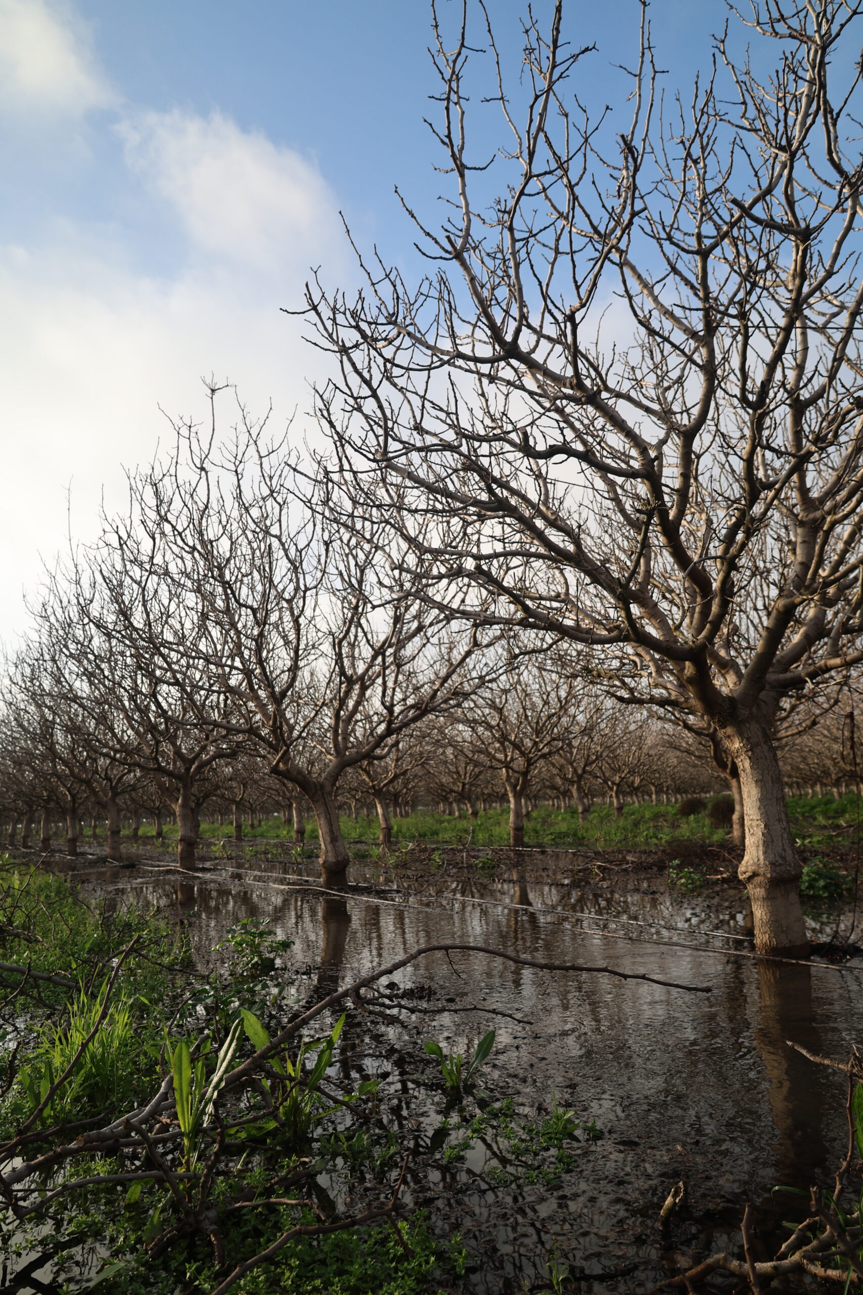 As the afternoon sun burned the dense tule fog off the valley floor, a group of growers, water managers, researchers, and curious minds gathered at a Valov Brothers Farm pistachio orchard block in Tulare County. Water pulsed from a pump and spread across the orchard floor as the attendees discussed a shared question: how can we replenish groundwater resources while improving water quality?