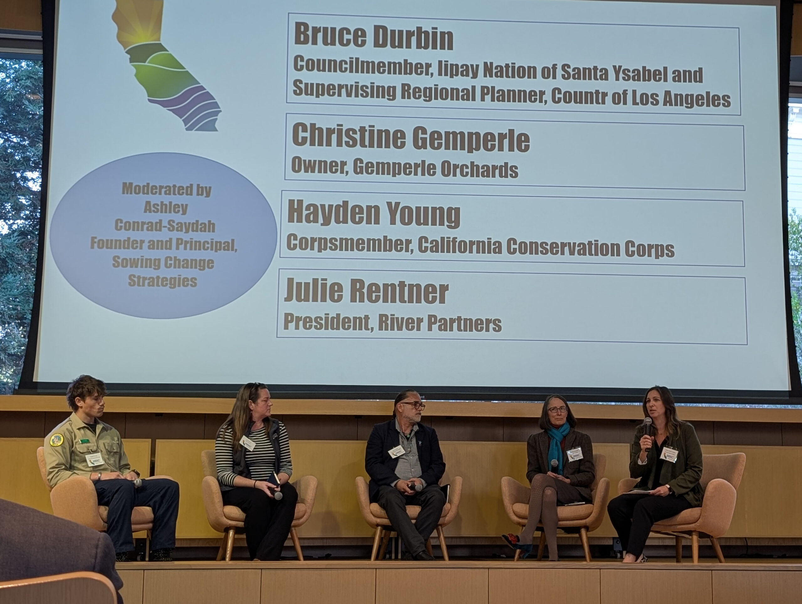 On working lands, Christine Gemperle described how hedgerows bring birds that manage pests naturally, how seasonal flooding can address gopher challenges, and how whole orchard recycling improves soil health. These are not abstract climate solutions; they are daily management decisions that reduce inputs, improve resilience, and support biodiversity.