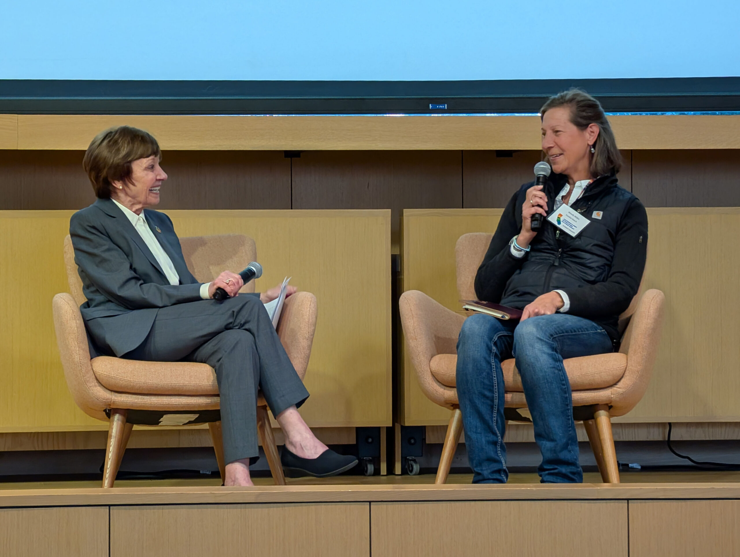 Pictured above: Secretary Karen Ross (California Department of Food and Agriculture) and Wendy Millet (Ranch Director, TomKat Ranch). Pictured below: Kristen Murphy and Stephanie Falzone, Sustainable Conservation