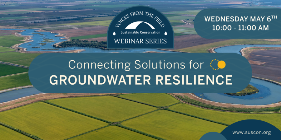 Join Sustainable Conservation on April 8 as we kick off the Spring 2026 season of our Voices from the Field webinar series! We’ll start with From Climate Challenges into Watershed Solutions, a conversation with state leaders on why healthy watersheds – above and below ground – are central to California’s climate future.