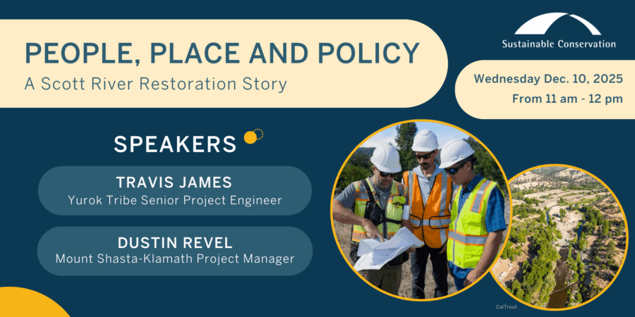 For the last webinar in our series, our program staff shared why they are passionate about building a more resilient California, and discussed how Sustainable Conservation is overcoming climate threats through collaborative, science-driven, and community-centered strategies that protect our natural resources.